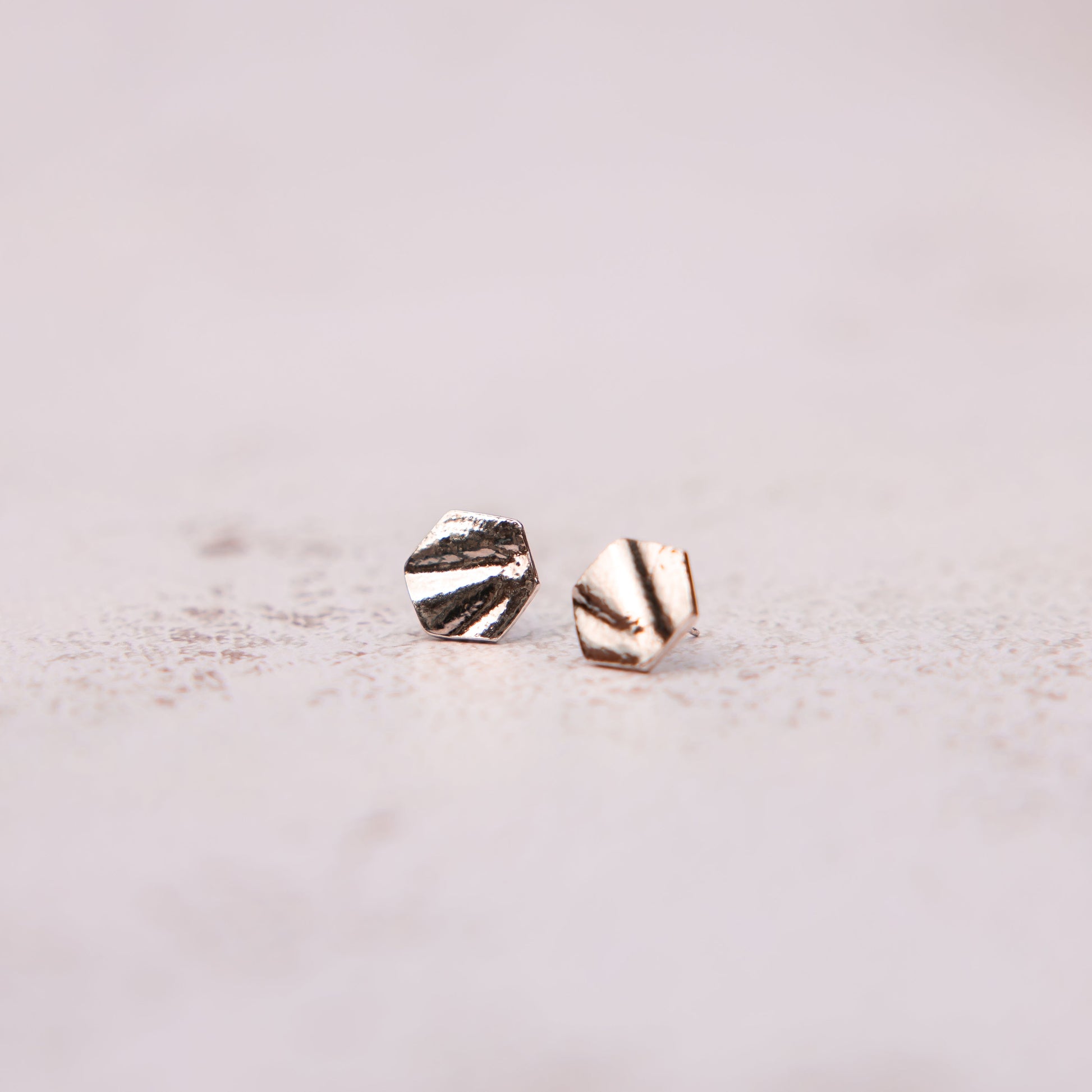 These silver studs allow you to carry a piece of the natural world with you wherever you go. Each piece is one of a kind due to the unique impression process. The organic pattern is textured with Dall sheep horn, caribou antler, spruce bough, elk antler, wood knot, or willow bud.